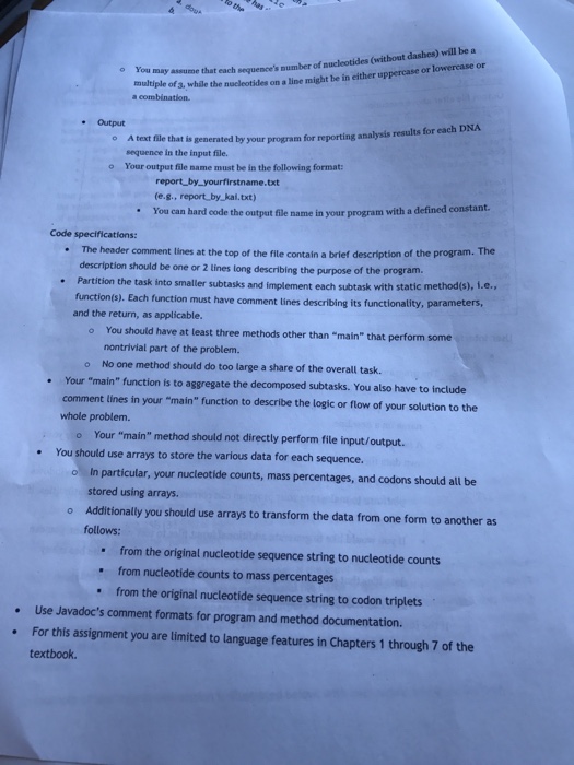 Solved You are hired by a biologist to write a Java program | Chegg.com