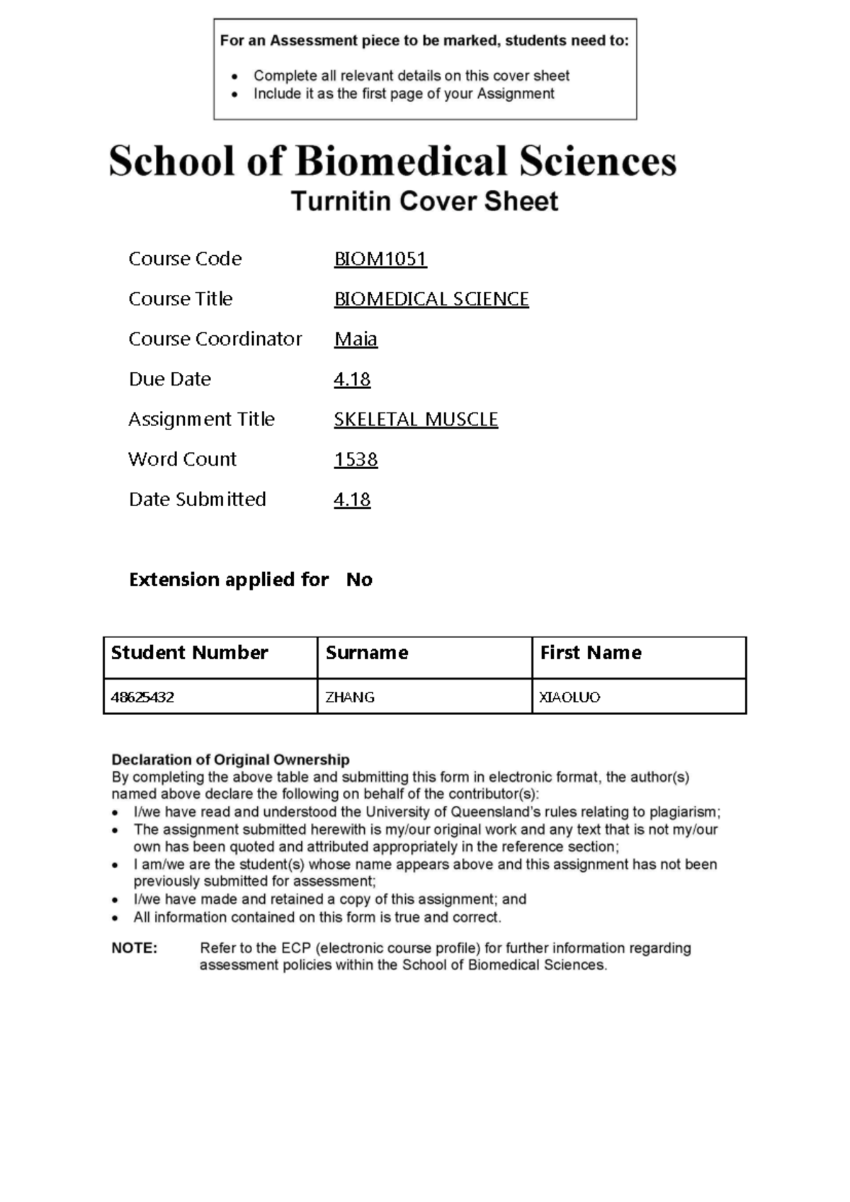 Sk M Report Template BIOM1051 - Course Code BIOM Course Title ...