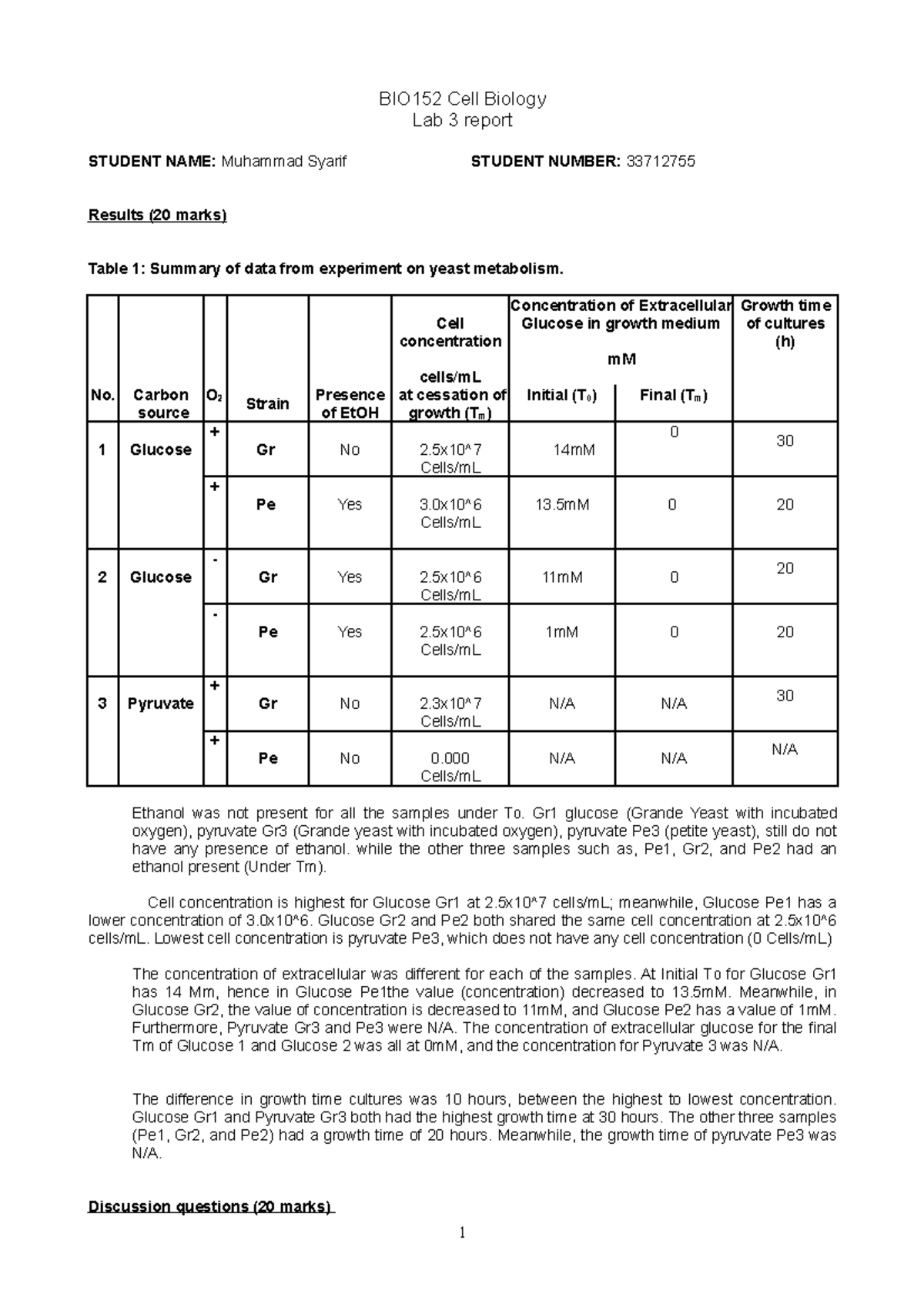 BIO152 2018 Lab report 3 - BIO152 Cell Biology Lab 3 report STUDENT ...
