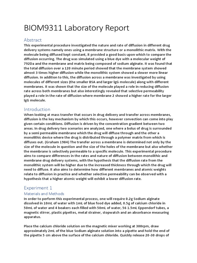 BIOM Laboratory Report | PDF | Diffusion | Cell Membrane