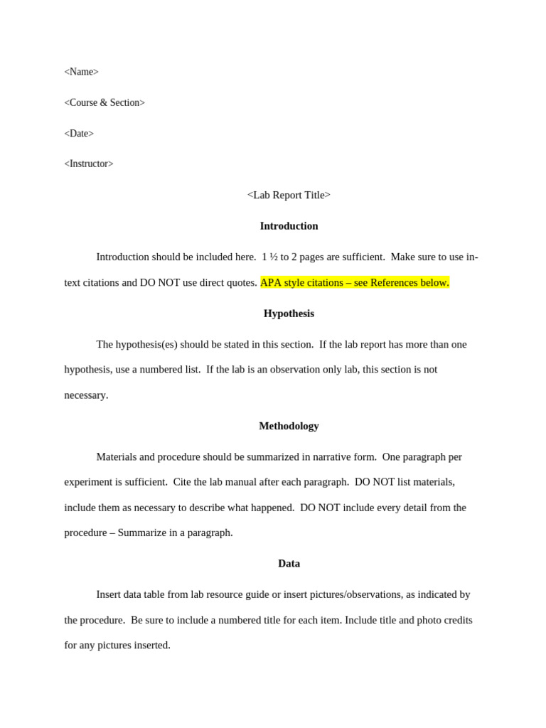 Bio Lab Report Template