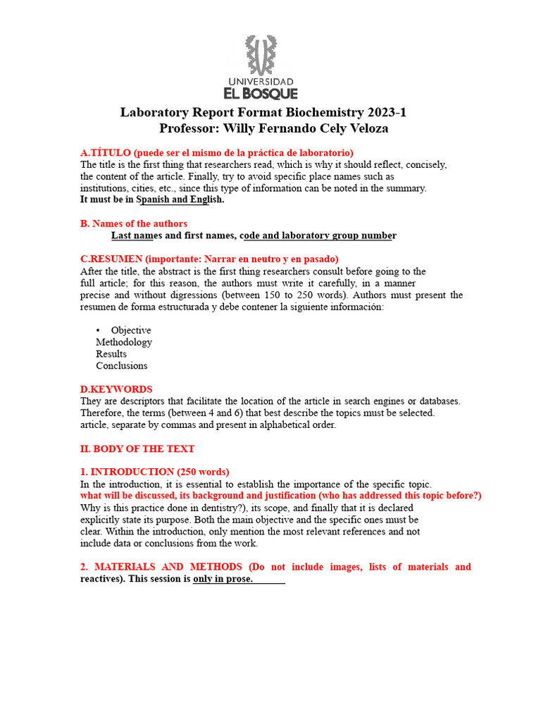 Biochemistry Laboratory Report Format - 2023-1 | PDF | Abstract (Summary)