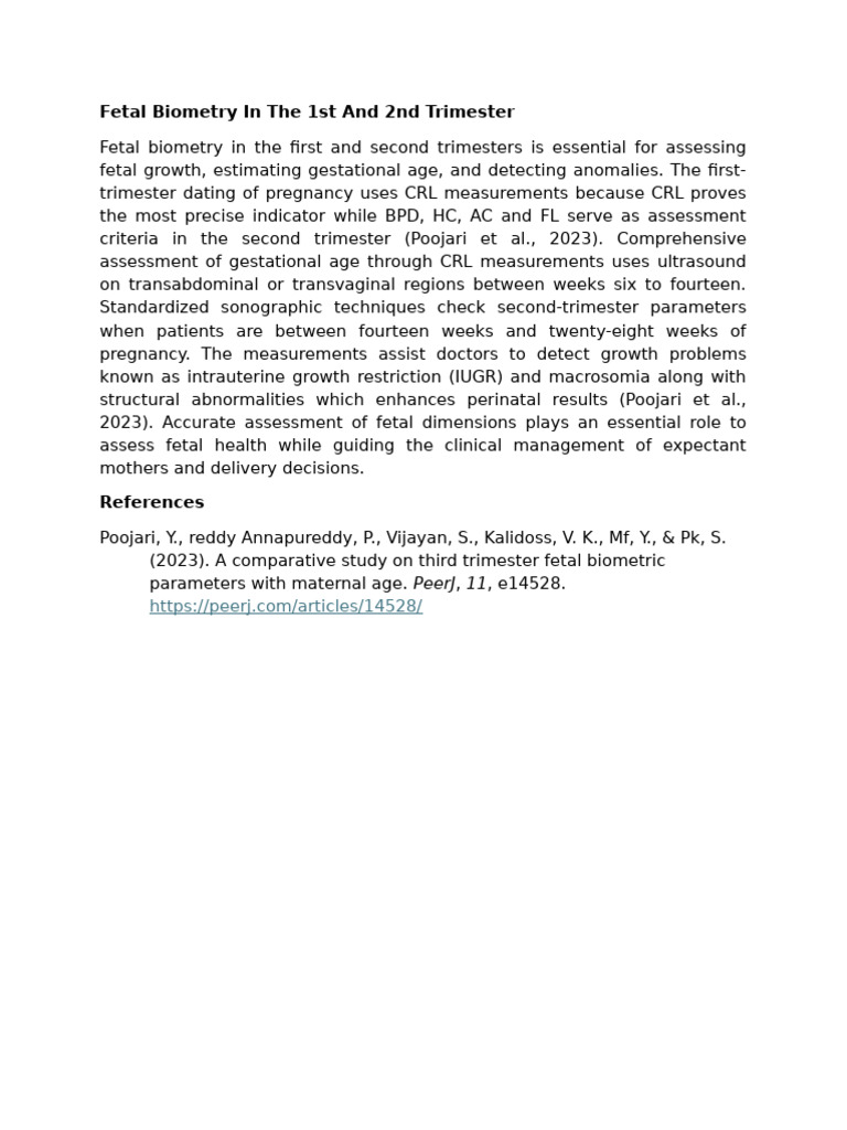 Fetal Biometry in The 1st and 2nd Trimester | PDF
