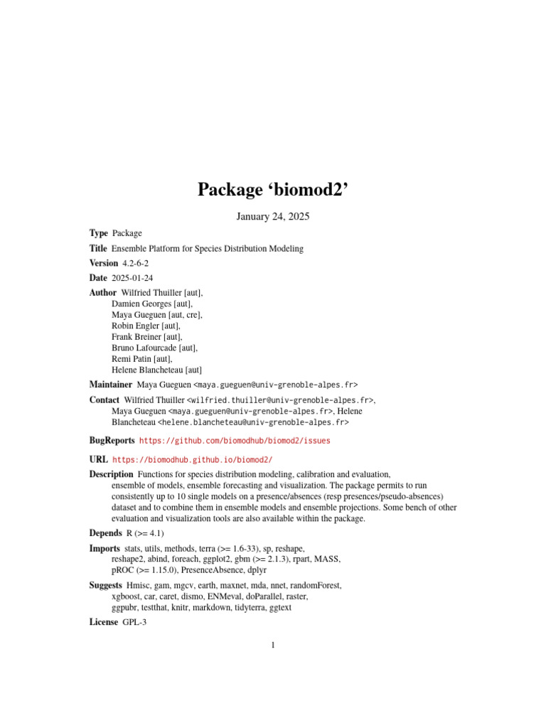 (PDF) biomod2: Ensemble platform for species distribution modelling