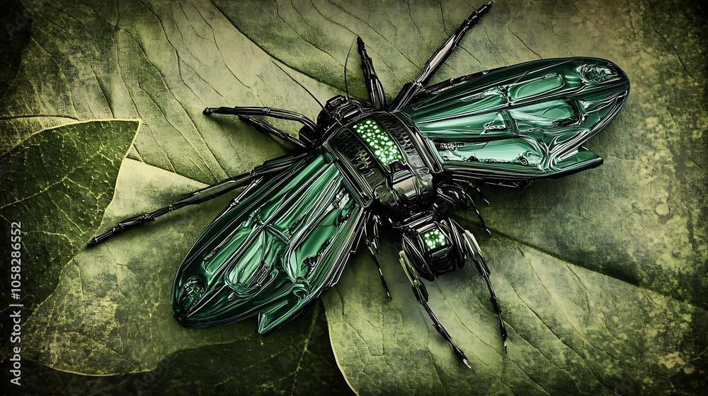 AI generated Close-up view of a bionic beetle, showcasing its intricate ...