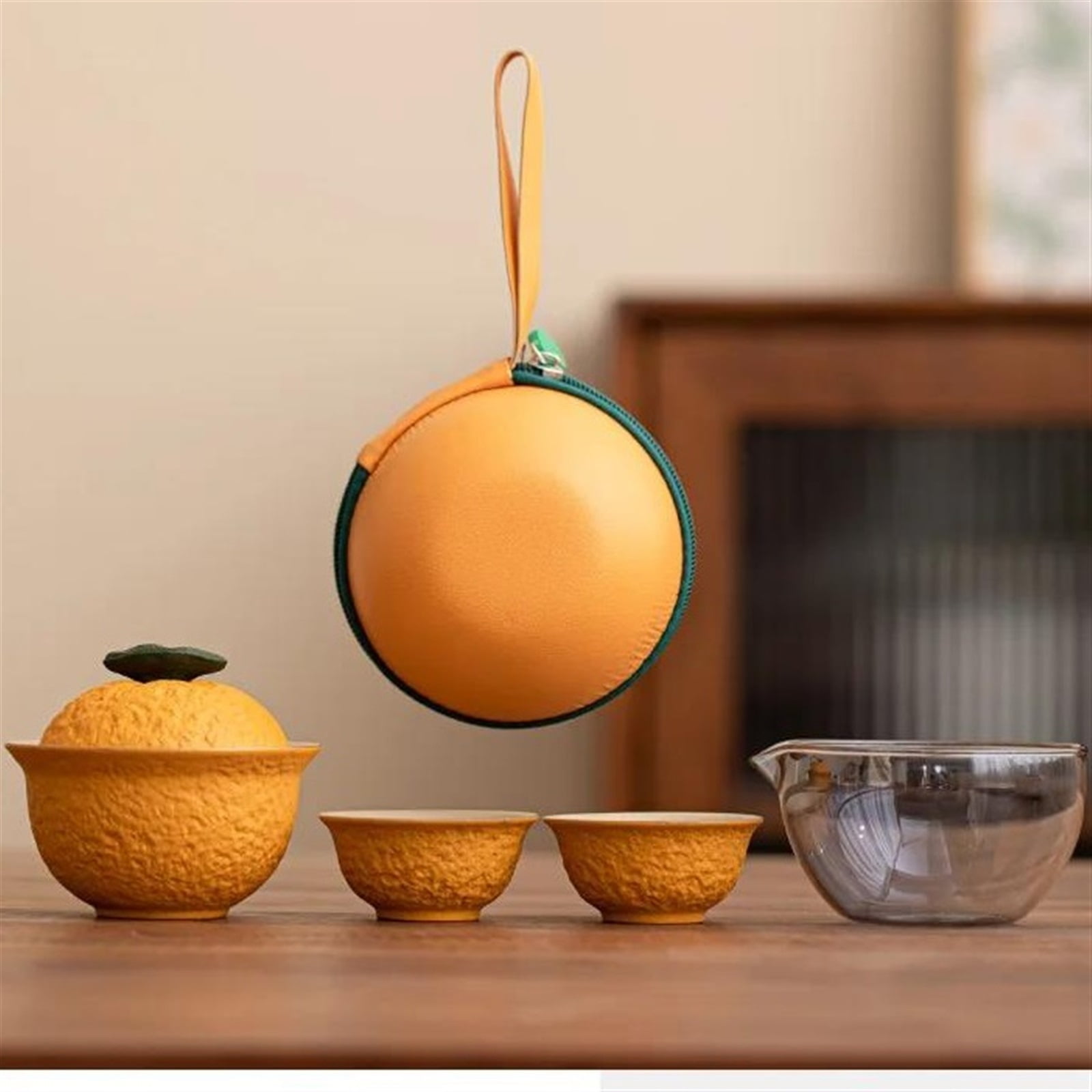 Bionic Ugly Orange Ceramic Tea Set 1 Pot 2 Cups Tea Making Travel Tea ...