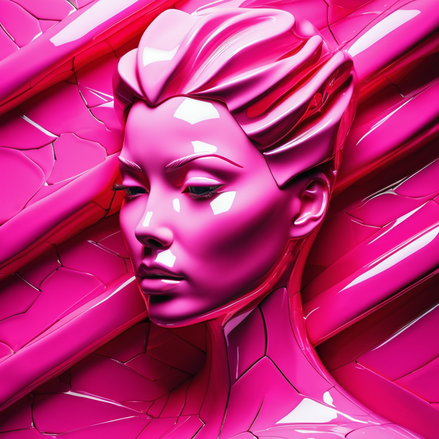 Woman bionic ceramic glossy pink face sculpture by John Ryan - Playground