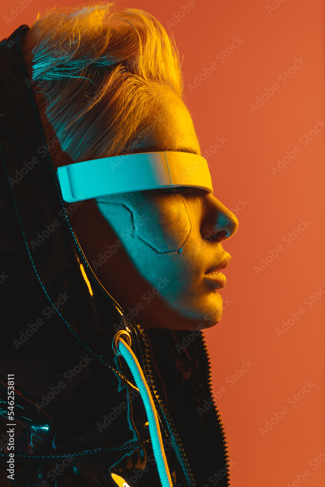 Representation of a bionic super human with advanced technology parts ...