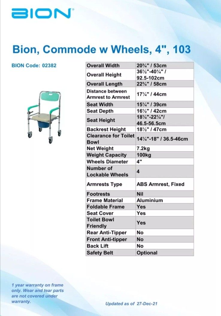 BION Commode with 4 lockable wheelchair, Health & Nutrition, Assistive ...