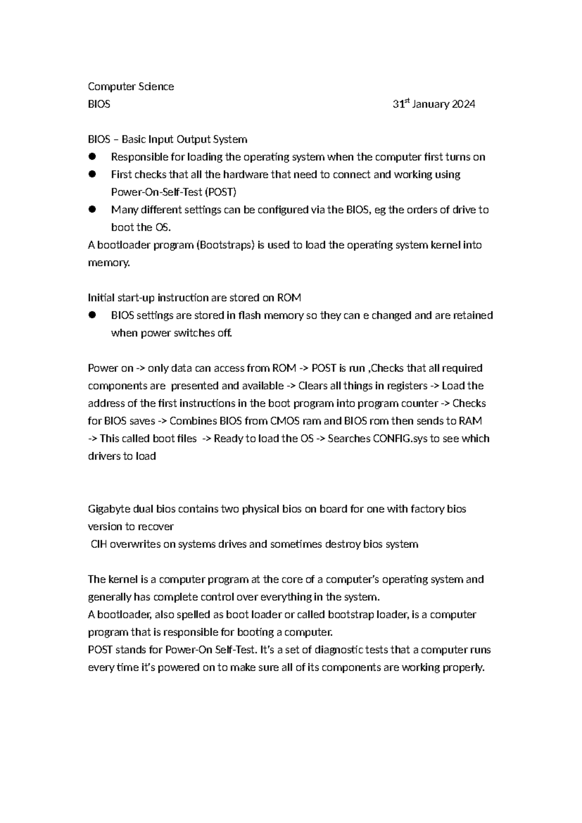 BIOS - Computer Science - Computer Science BIOS 31 st January 2024 BIOS ...