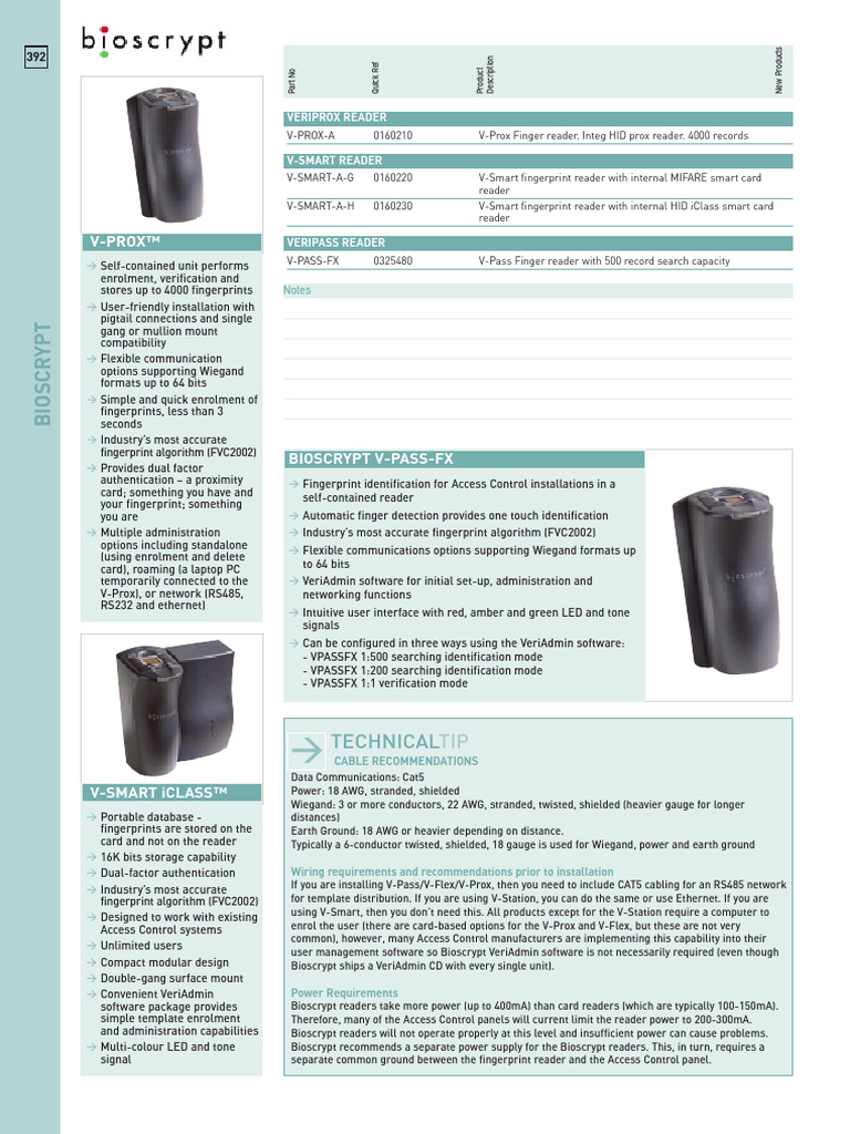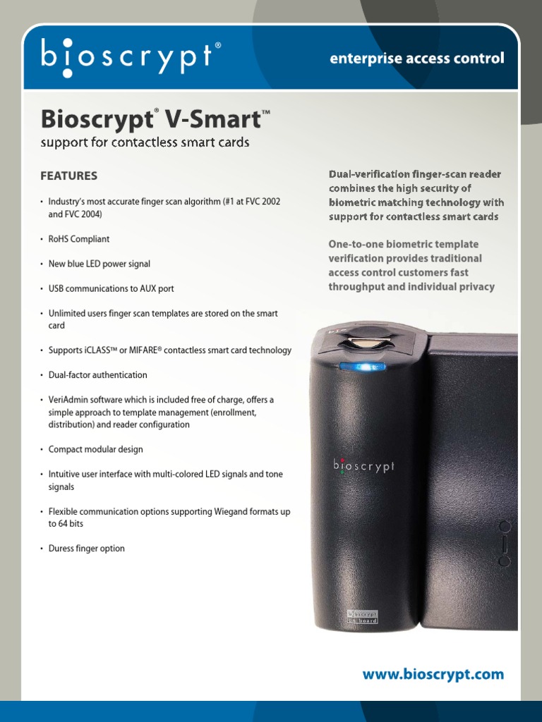 Bioscrypt V-Smart A, R Fingerprint with Integrated MIFARE Smart Card ...