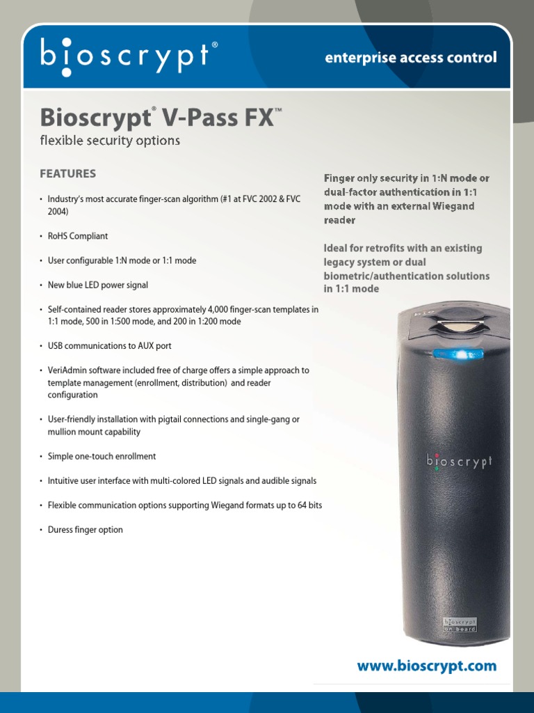 Bioscrypt V-Pass FX™ biometric finger-scan reader Software