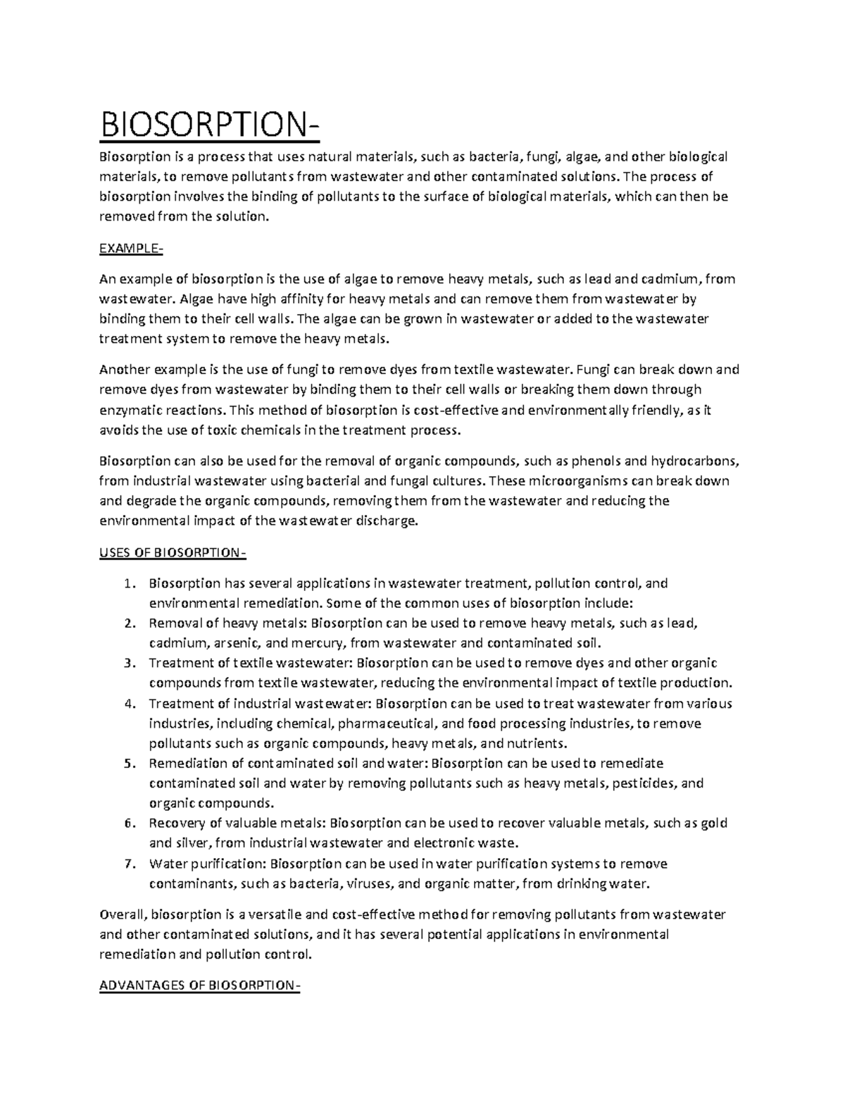 Biosorption - BIOSORPTION- Biosorption is a process that uses natural ...
