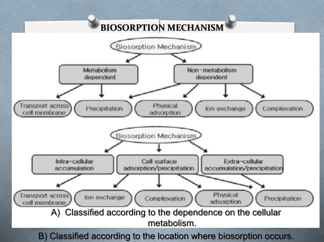 Mechanisms of biosorption, a) classification according to dependence on ...
