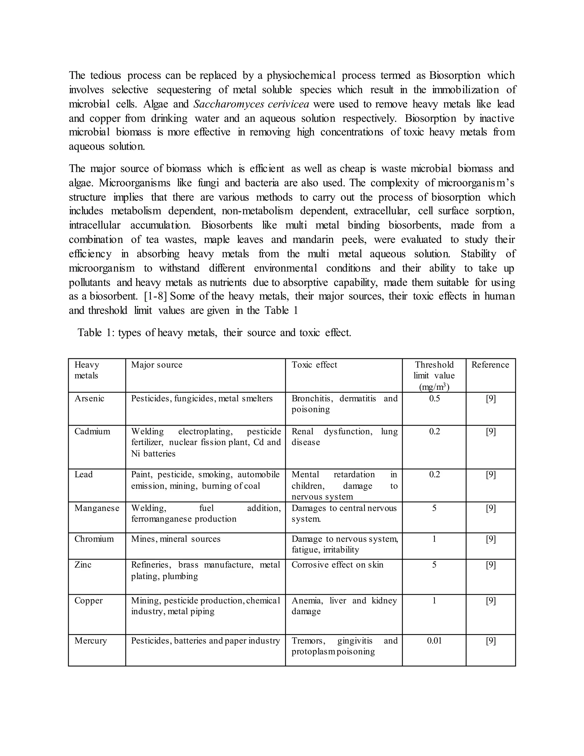 Biosorption of heavy metals | DOCX