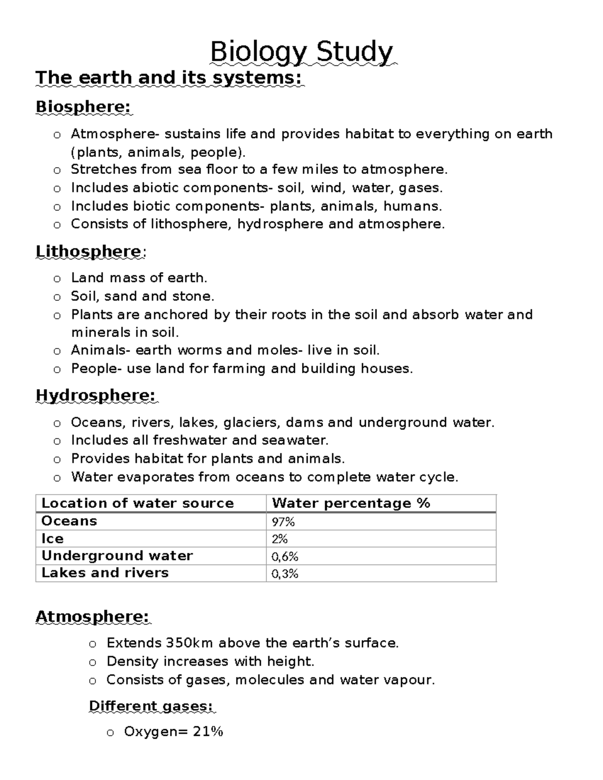Biology Study - Bio notes - Biology Study The earth and its systems ...