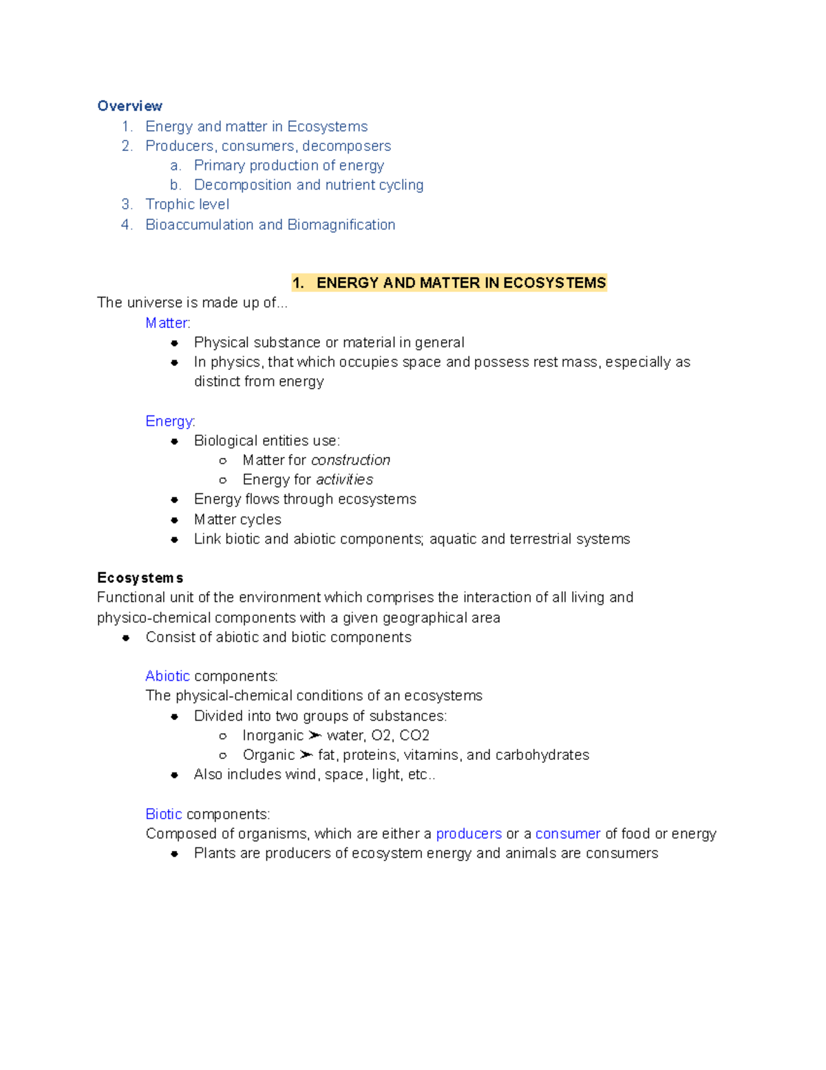 Biosphere Lecture Notes: Energy and Matter in Ecosystems Overview - Studocu