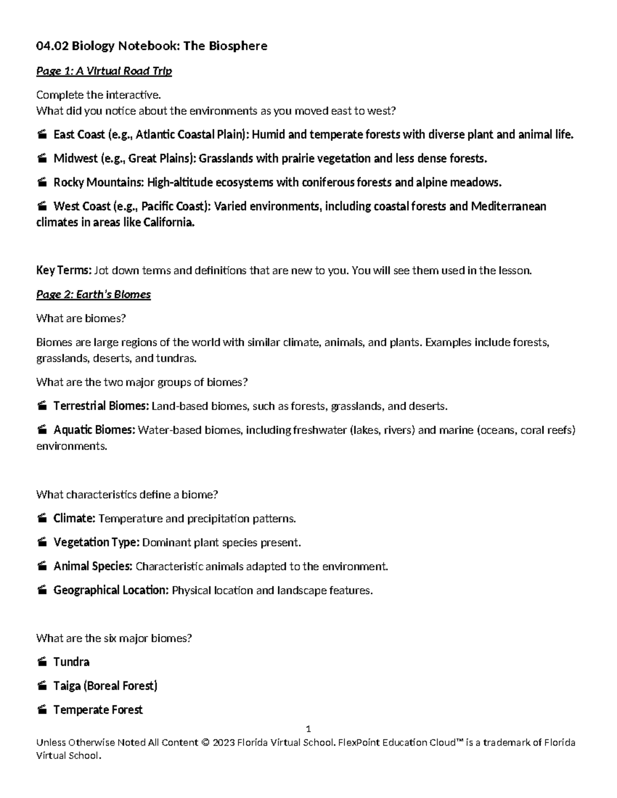 Earth Science. Biosphere student notes | DOC