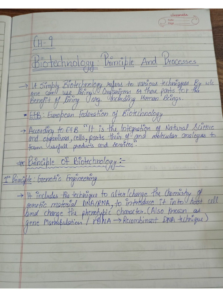 Biotechnology Principles and Process Handwritten Notes for 12th Biology ...