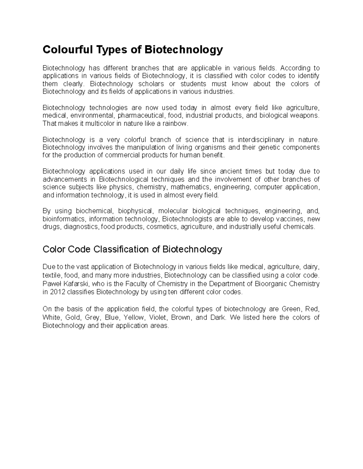 The Colors of Biotechnology Explained | PDF | Biotechnology | Color