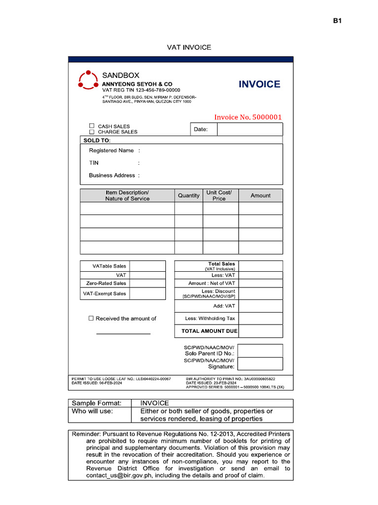 BIR - LIST OF SAMPLE INVOICES Annex A1-B6 of RMC 77-2024 For more ...