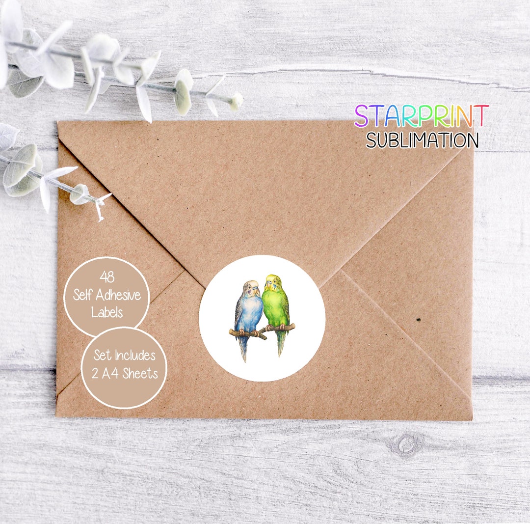 Budgie Bird Stickers, 48 Round Labels (2 A4 Sheets, 24 per Sheet ...