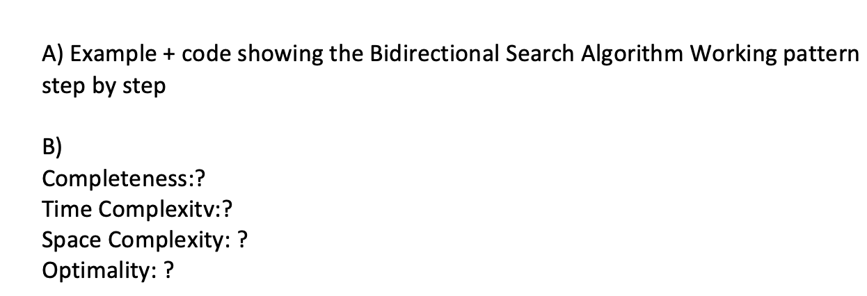 Solved A) Example + code showing the Bidirectional Search | Chegg.com