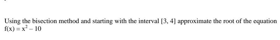 Solved Solving Nonlinear Equations by the Bisection Method | Chegg.com