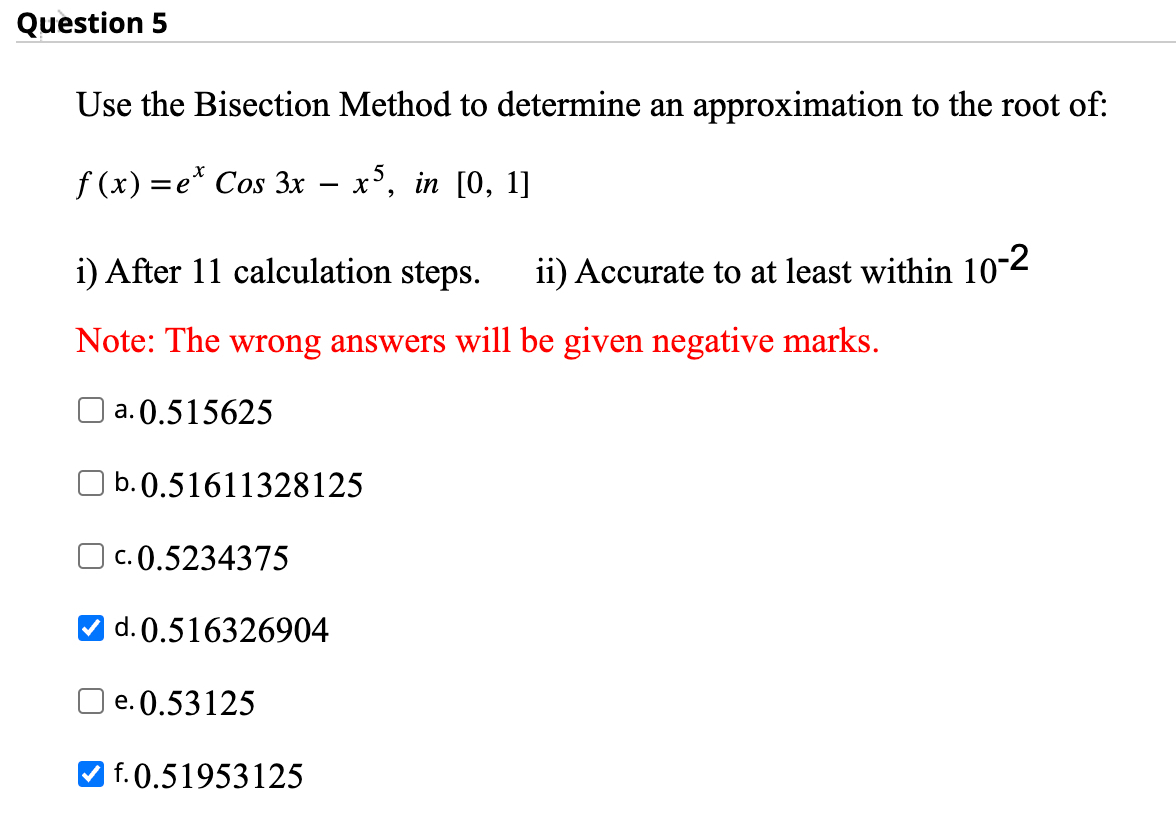 Solved Question 5Use the Bisection Method to determine an | Chegg.com