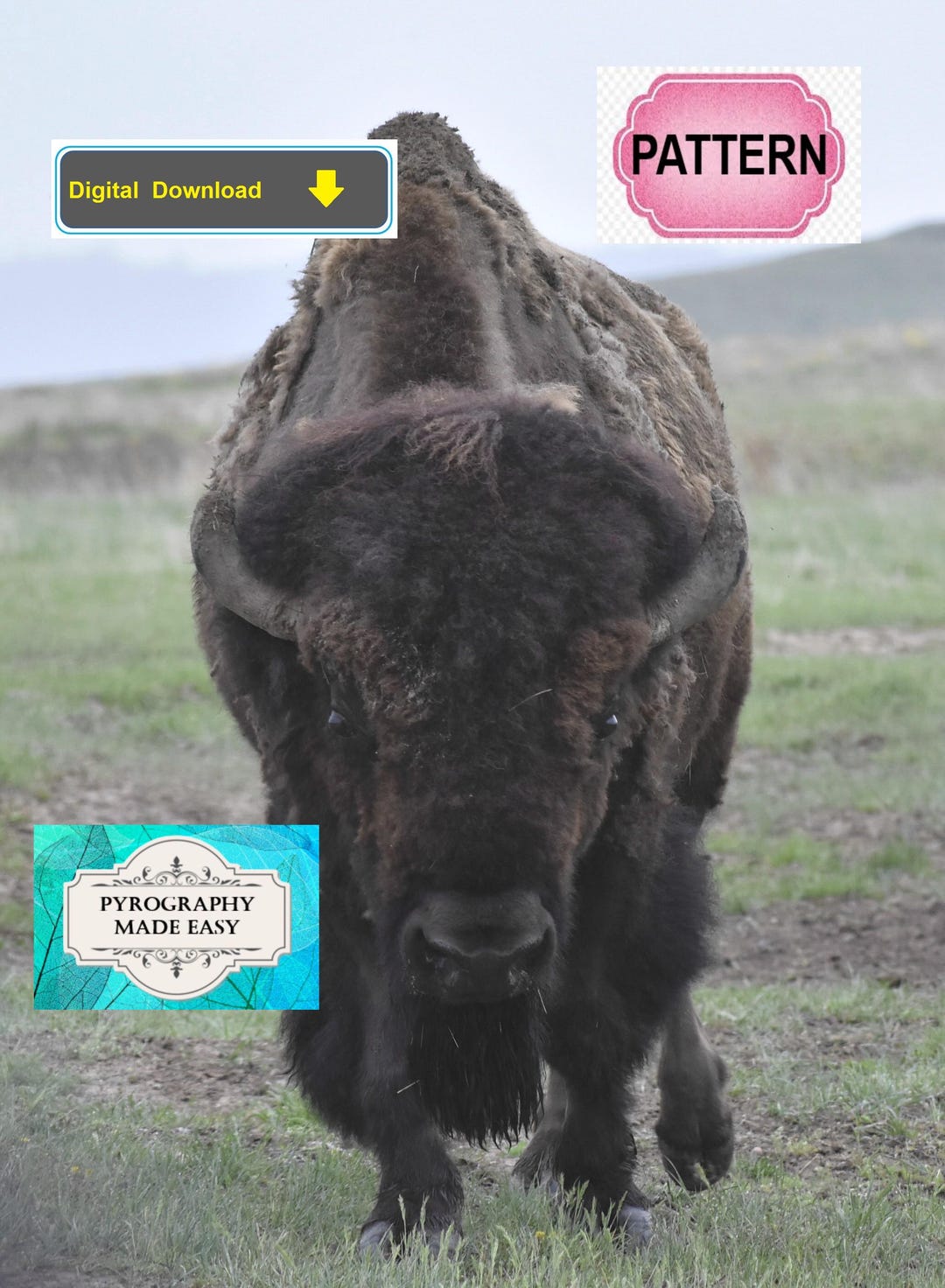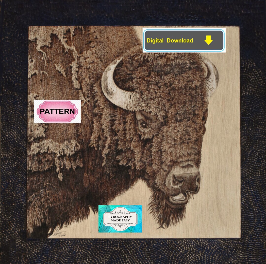 Bison Close up Pyrography Pattern: Wood Burning Art Pattern (digital ...