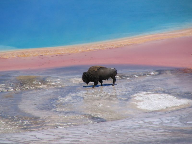 Bison at Grand Prismatic Spring | Buffalo animal, Bison, American bison