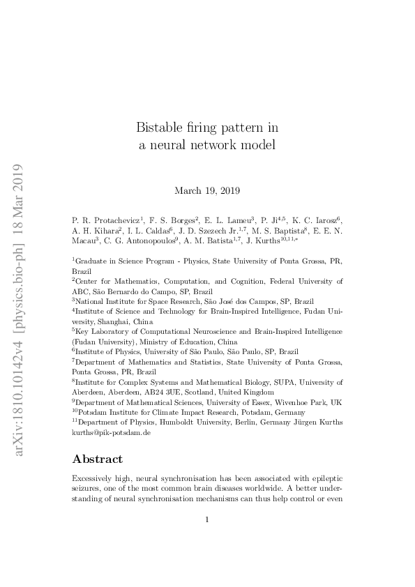 (PDF) Bistable Firing Pattern in a Neural Network Model