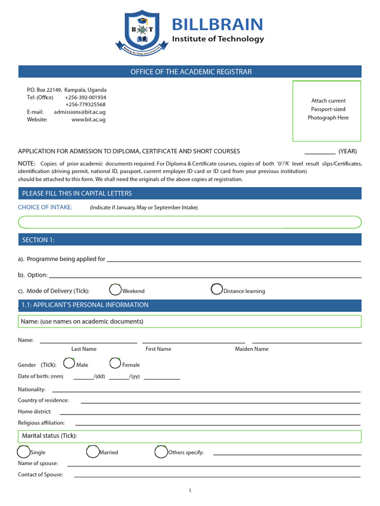 BIT Students Application - Form | PDF | Identity Document | Government ...