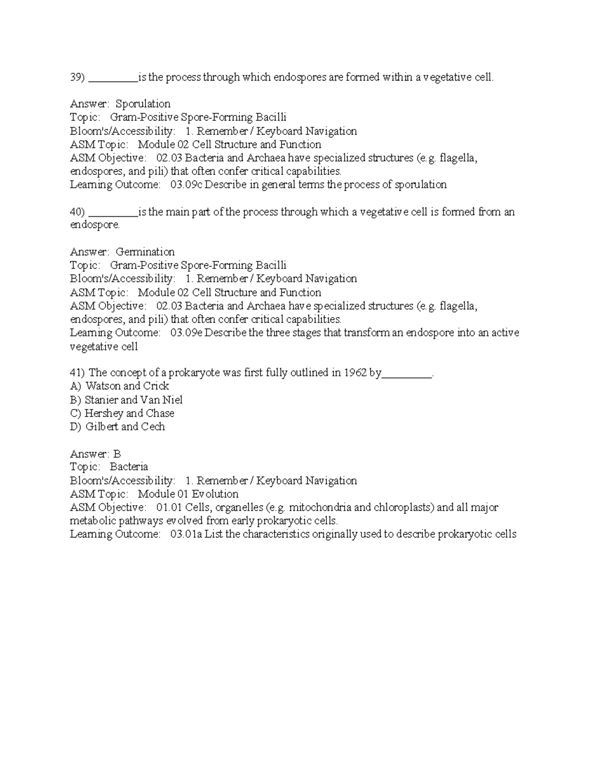 Test Bank: Prescott's Microbiology 12th Ed. (ASM) - Sporulation ...
