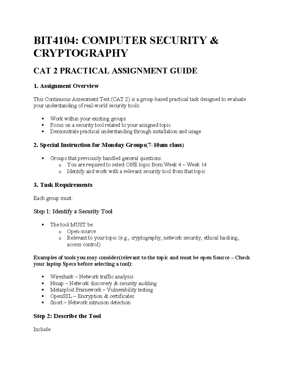 BIT4104: CAT 2 Practical Assignment Guide on Security Tools - Studocu