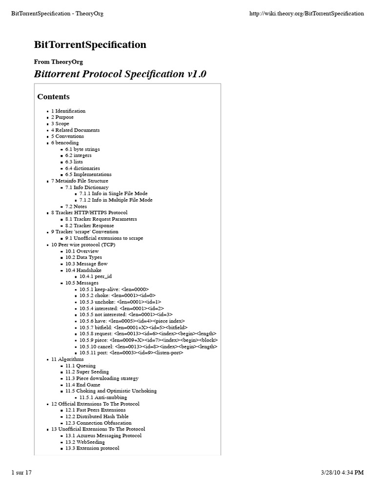 BitTorrent Protocol Spec v1.0 | PDF | Ip Address | Computer File
