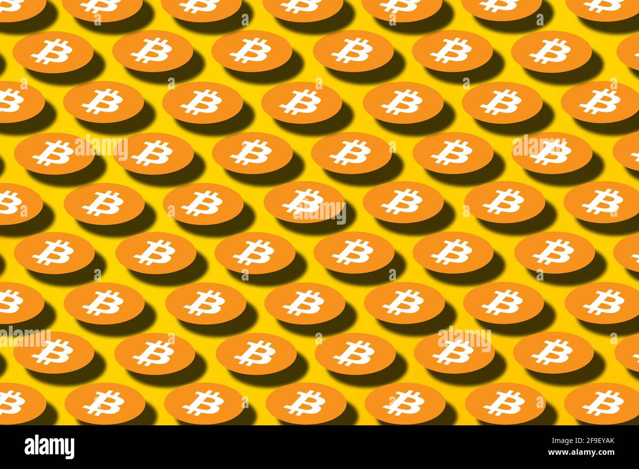 Cryptocurrency bitcoin pattern on yellow background concept wallpaper ...