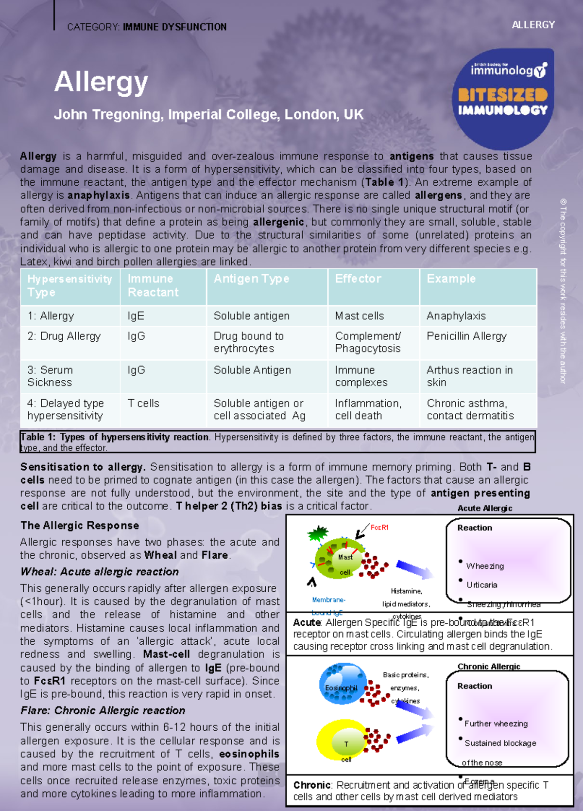 Allergy - Bitesize Notes on Immune Dysfunction and Hypersensitivity ...