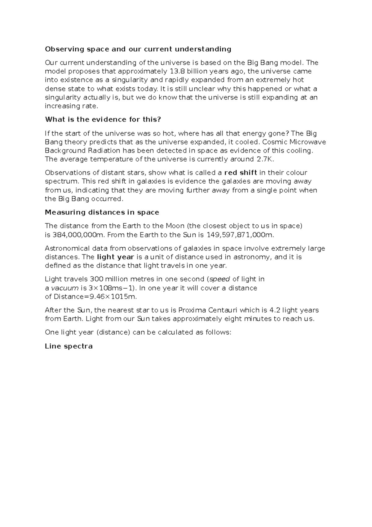 Nat 5 Physics: Bitesize Notes on Space and the Big Bang Theory - Studocu