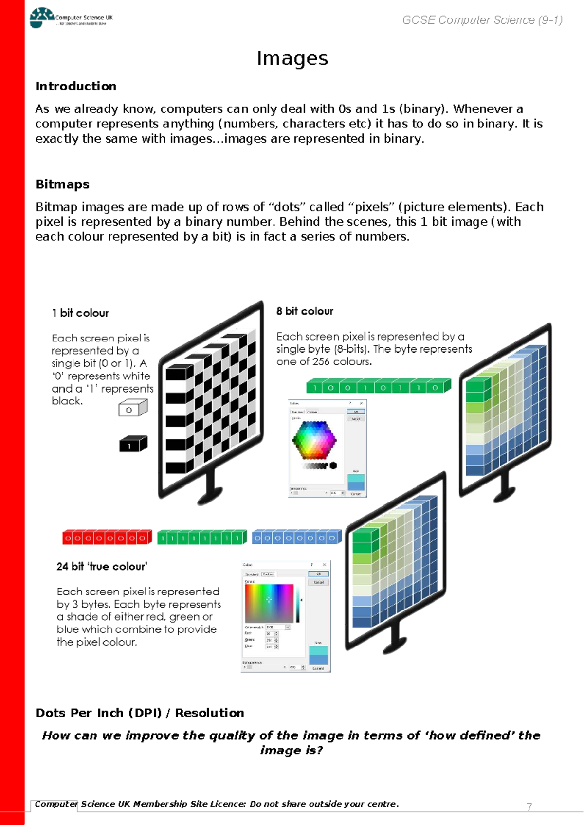 Teach-ICT Computer Science Edexcel GCSE Image Bitmap Pixel Colour Depth