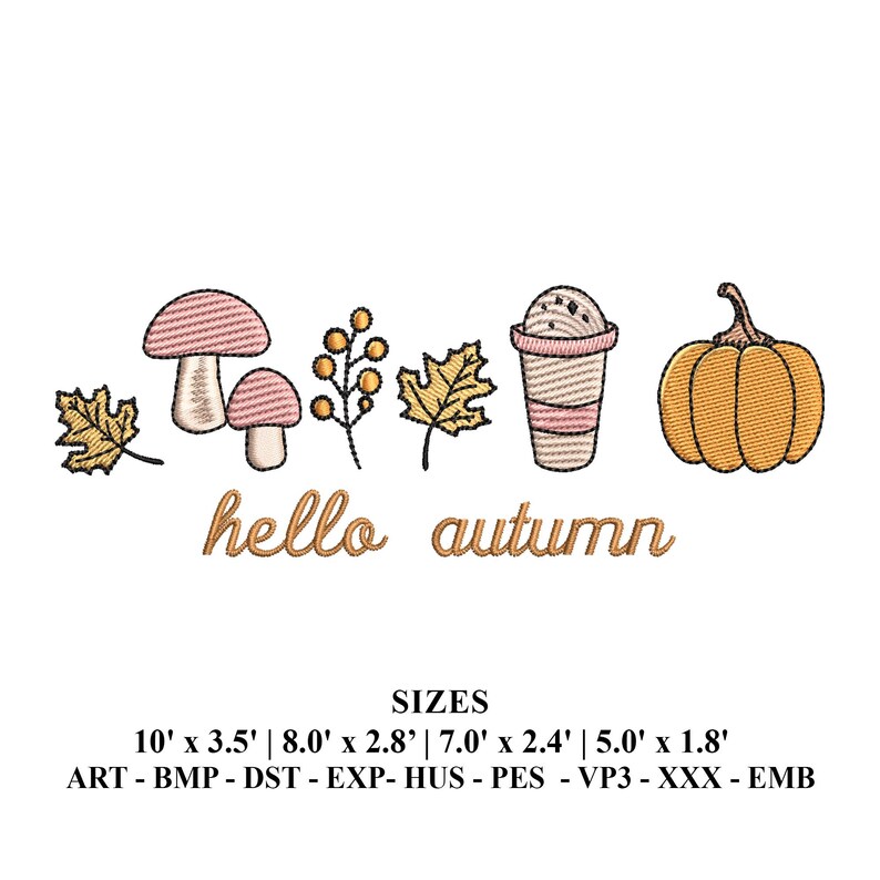 Fall Embroidery File, Autumn Leaves Embroidery Design, Pumpkin ...