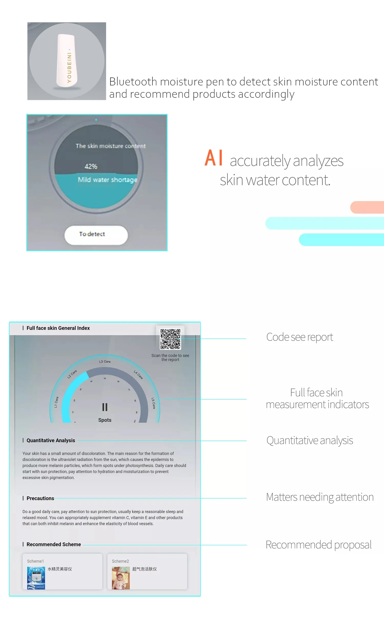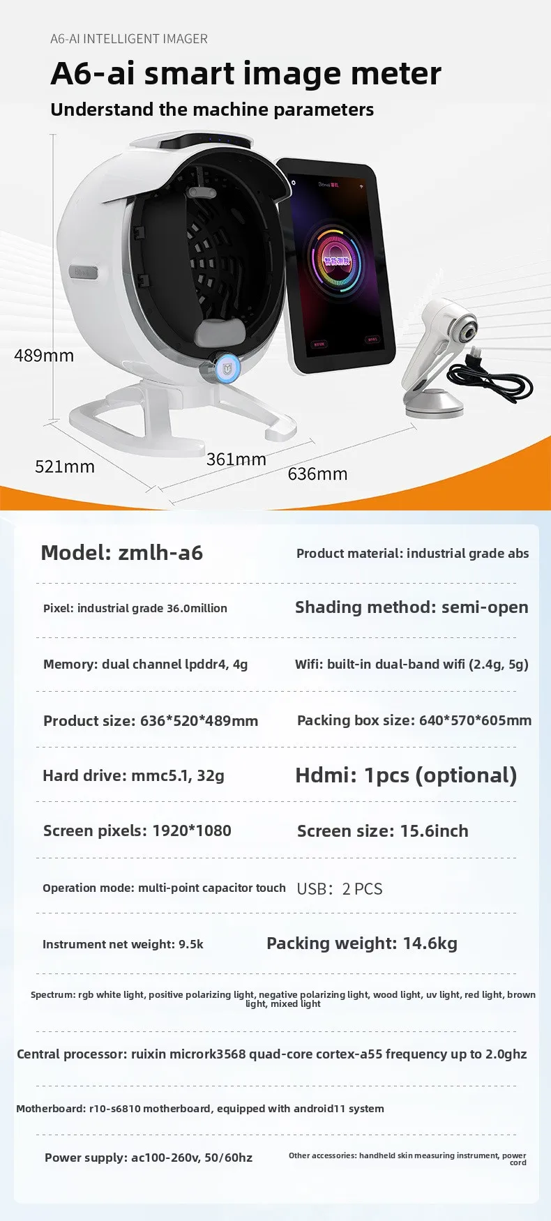 For Bitmoji A6 Ai Smart Skin Detector UV Moisture Spectrum Analyzer LED ...