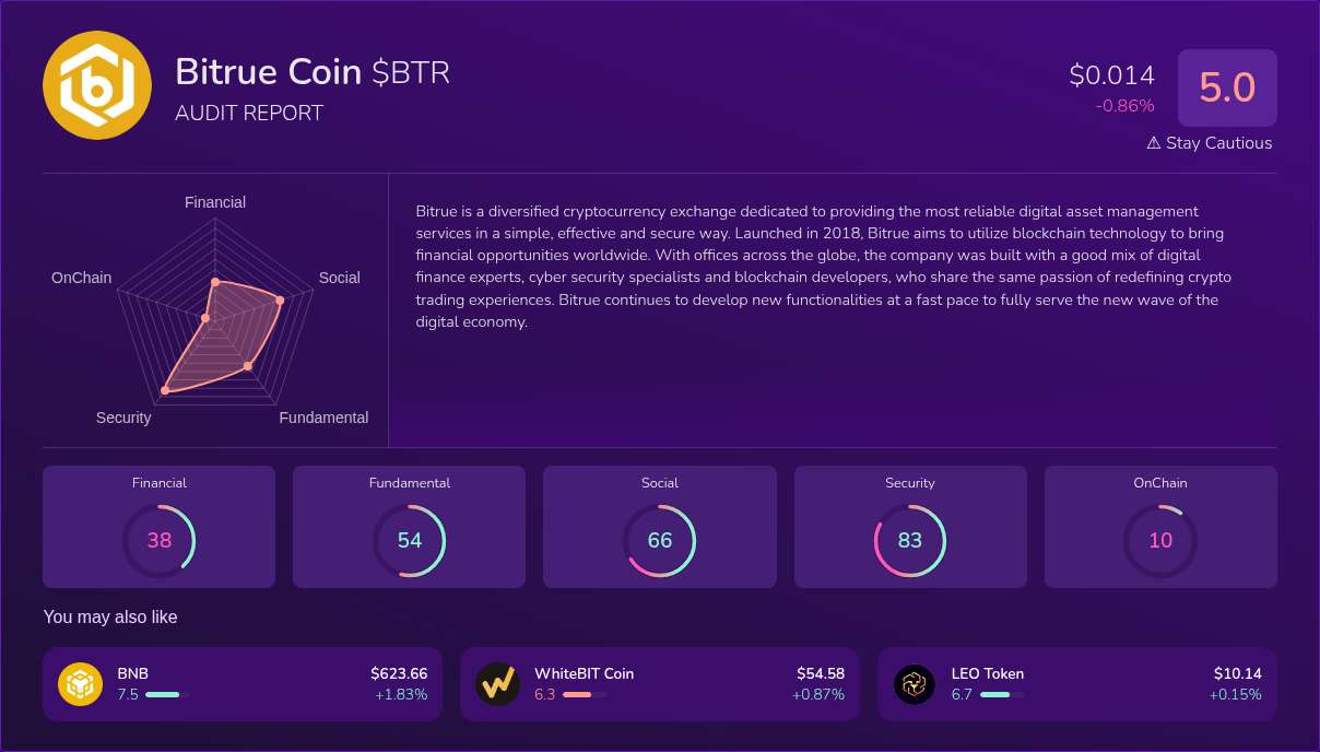 Bitrue Coin - CertiK Skynet Project Insight