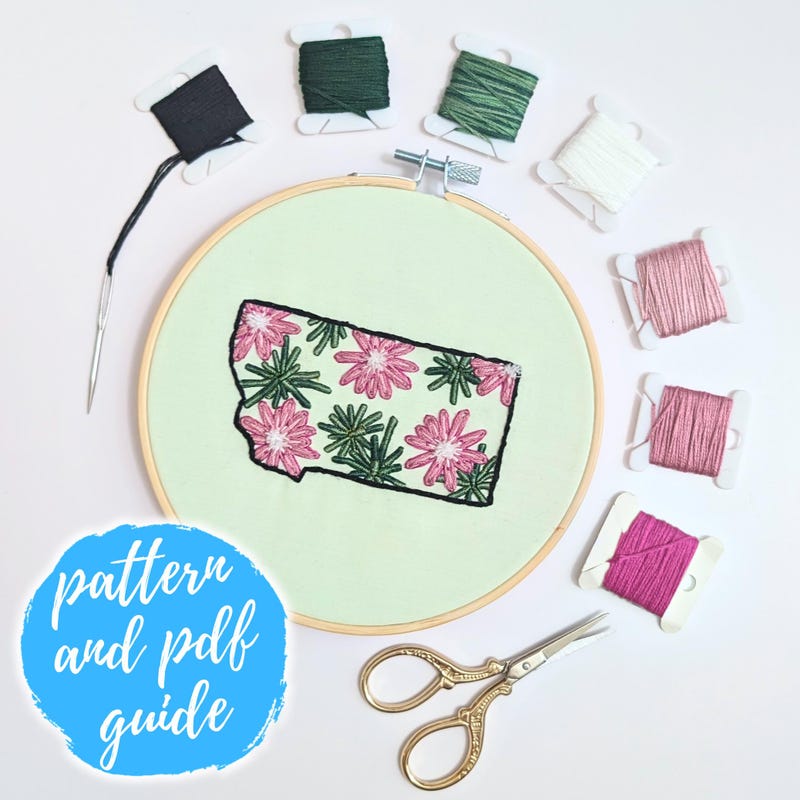 Montana Embroidery Design, Bitterroot Flower State Machine Embroidery ...