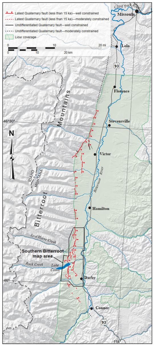 Quaternary fault and location map of the Bitterroot fault and ...