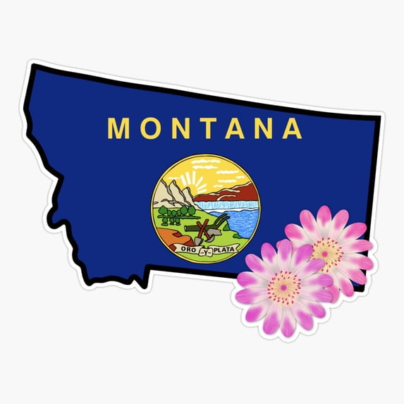 DOPASTICKER State Of Montana Flag With State Flower Bitterroot Sticker ...