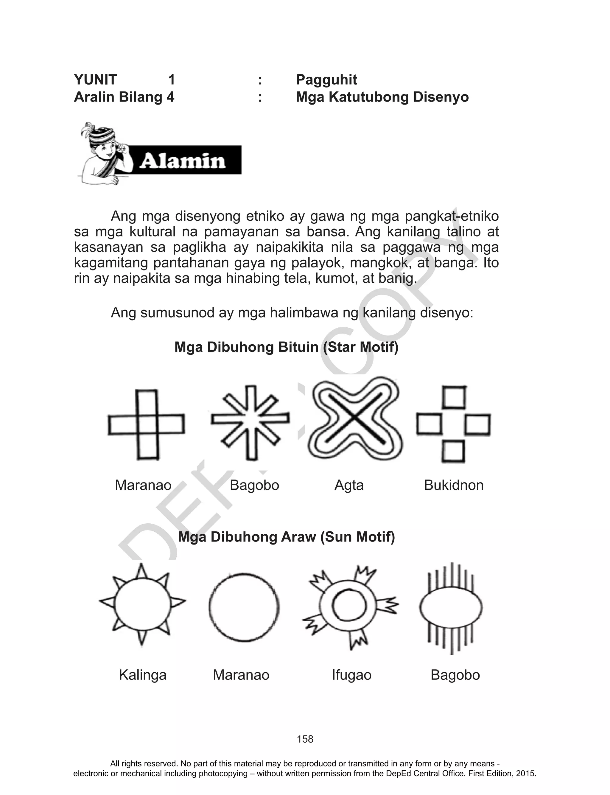 II. Iguhit ang mga sumusunod na dibuhong bituin at araw 6.Maranao 7 ...