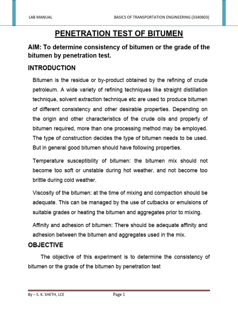 Penetration Test of Bitumen-Procedure, Apparatus, and Uses for Road ...