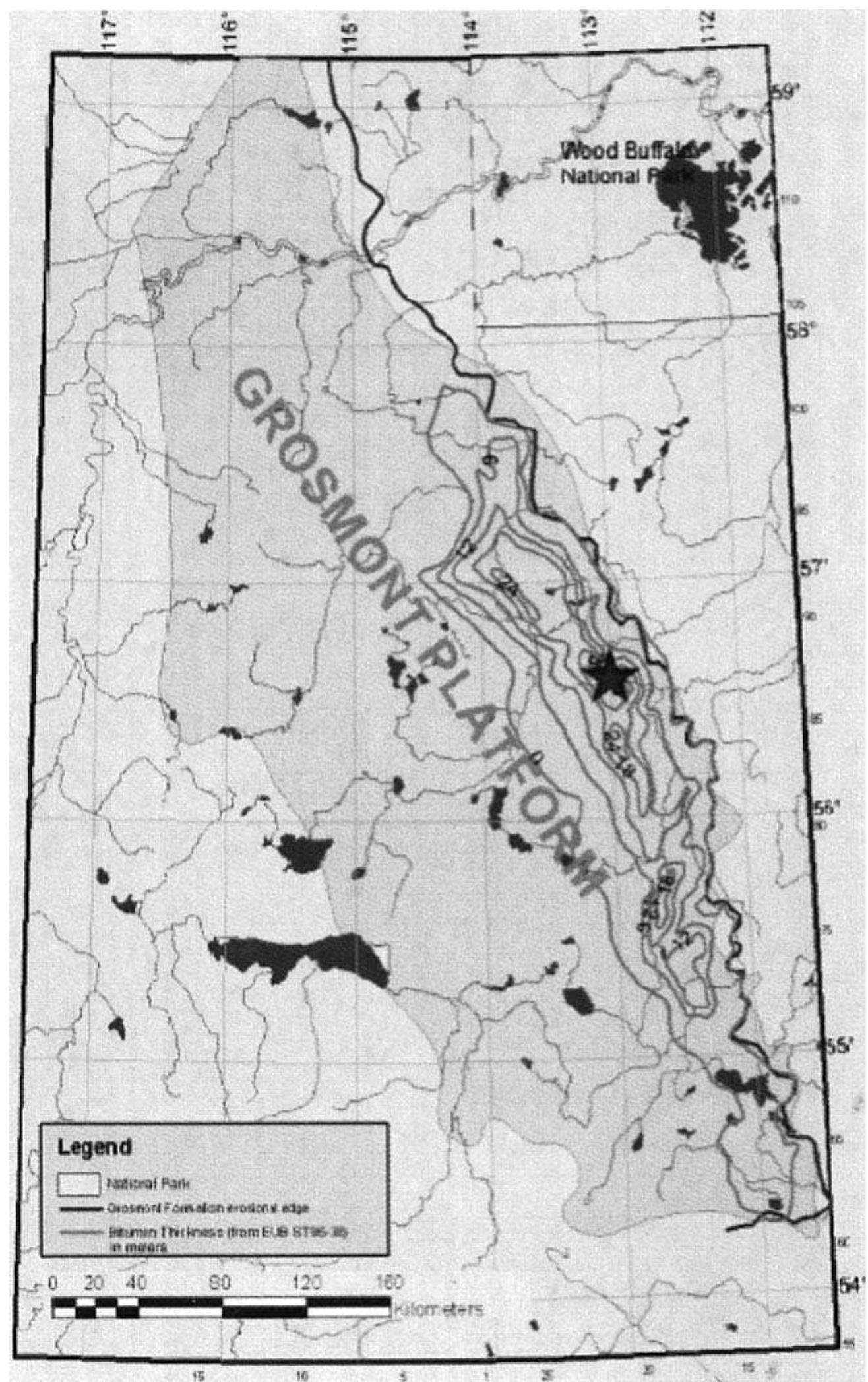 Bitumen pay-thickness map of Athabasca Wabiskaw-McMurray deposit, for ...