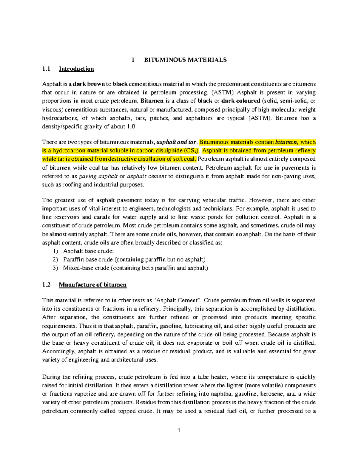 Highway Materials Notes 2 - 1 1 BITUMINOUS MATERIALS Introduction ...